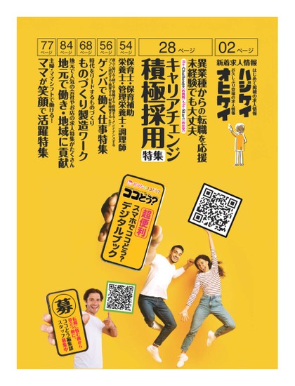 スマホでココどう?デジタルブックおうちでどう?ココデジタルブック&フリーペーパーハイブリッド求人情報超便利ココどう編集部スタッフ募集中転職に悩む側から役立つ側に。募ゲンバで働く仕事特集地元で働き・地域に貢献地元で人気の会社やお店の求人特集がたくさん主婦・ママシフトで働ける!笑顔活躍特集で56ページ保育士・保育補助栄養士・管理栄養士・調理師54ページ2884ページものづくり製造ワーク時代をリードするものづくり68ページ77ページ運ぶ・届ける・建てる・警備する・整備する・メンテナンスするプラン設計する・農業する・収集廃棄するetc. 新着求人情報はじめて掲載の求人情報お久しぶり登場の求人情報ページ02ページ異業種からの転職を応援未経験でも大丈夫Re-Challenge(再挑戦)・Re-Start(再出発)積極採用キャリアチェンジ特集