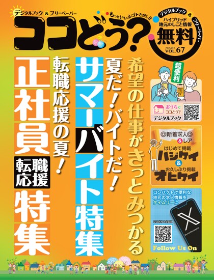 NWRウイ超便利超便利デジタルブックどう?おうちでココ無料お一冊!地元の求人見やすい誌面新鮮な情報おうちでどう?ココ&レアはじめて掲載&お久しぶり掲載コンパクトで便利な地元の求人情報をタイムリーにココどう?公式Xonaganuodococ@希望の仕事がきっとみつかる夏だバイトだ!!転職応援の夏!正社員転職応援特集