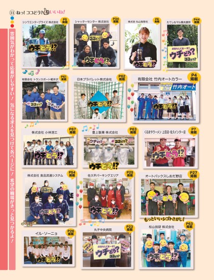 ねっ!ココどう?シンワエンタープライズ株式会社P5掲載シャッターセンター株式会社P34掲載株式会丸山珈琲社P6掲載たてしなマル横共所P44掲載有限会社トランスポート軽井沢P61掲載日本プラパレット株式会社P62掲載有限会社竹内オートカラーP4掲載株式会社小林溶工P67掲載豊上製菓株式会社P63掲載くるまやラーメン上田店・佐久インター店P7掲載株式会社食品流通システムP54掲載佐久平パーキングエリアP25掲載オートバックスしおだ野店P27掲載イル・ソーニョP26掲載丸子中央病院P23掲載松山技研株式会社P63掲載11●●●雰囲気がわかって応募がしやすい!気になる求人を見つけて各ページに!希望の職場がきっと見つかるよ!