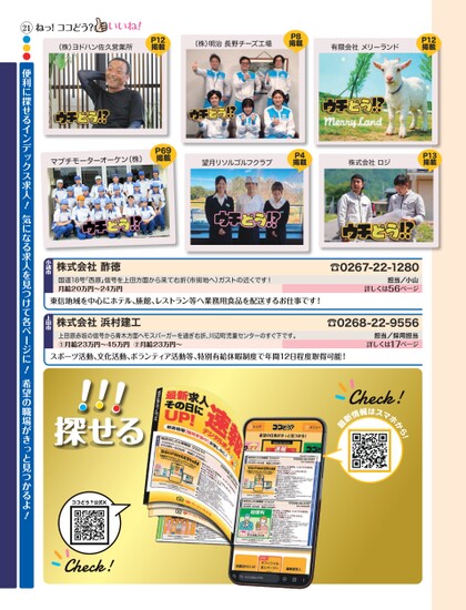 ねっ!ココどう?(株)ヨドハン佐久営業所P12掲載(株)明治長野チーズ工場P8掲載有限会社メリーランドP12掲載マブチモーターオーケン(株)P69掲載望月リソルゴルフクラブP4掲載株式会社ロジP13掲載新最情報はスマホから!☎0267-22-1280担当/小山詳しくは56ページ☎0268-22-9556担当/採用担当詳しくは17ページ東信地域を中心にホテル、旅館、レストラン等へ業務用食品を配送するお仕事です!株式会社酢徳国道18号「西原」信号を上田方面から来て右折(市街地へ)ガストの近くです!月給20万円〜24万円小諸市株式会社浜村建工上田原赤坂の信号から青木方面へモスバーガーを過ぎ右折、川辺町児童センターのすぐ下です。①月給23万円〜45万円②月給23万円〜上田市スポーツ活動、文化活動、ボランティア活動等、特別有給休暇制度で年間12日程度取得可能!ココどう?公式X21●●●便利に探せるインデックス求人!気になる求人を見つけて各ページに!希望の職場がきっと見つかるよ!