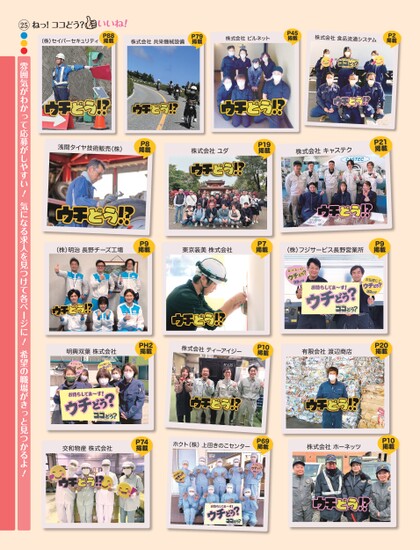 ねっ!ココどう?(株)セイバーセキュリティP88掲載株式会社共栄機械設備P79掲載株式会社ビルネットP45掲載株式会社食品流通システムP2掲載浅間タイヤ技術販売(株)P8掲載株式会社ユダP19掲載株式会社キャステクP21掲載(株)明治長野チーズ工場P9掲載東京装美株式会社P7掲載(株)フジサービス長野営業所P9掲載明興双葉株式会社PH2掲載株式会社ティーアイジーP10掲載有限会社渡辺商店P20掲載交和物産株式会社P74掲載ホクト(株)上田きのこセンターP69掲載株式会社ホーネッツP10掲載25●●●雰囲気がわかって応募がしやすい!気になる求人を見つけて各ページに!希望の職場がきっと見つかるよ!