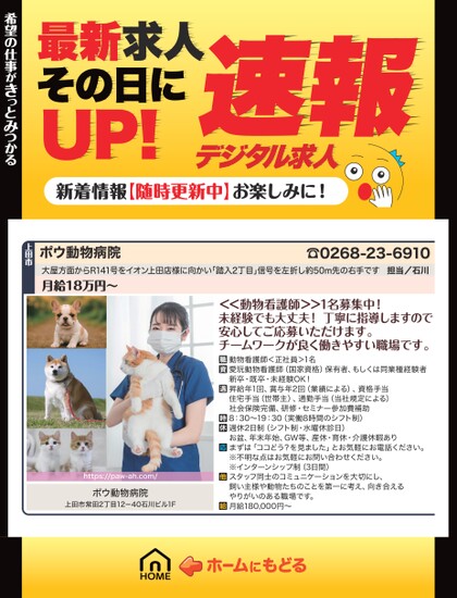 **長野県東信地域で仕事を探すなら「しごと情報ココどう?」。 上田市・佐久市・小諸市・東御市・御代田町・軽井沢町・佐久穂町・立科町・長和町・青木村・南牧村・川上村・南相木村・北相木村・小海町まで、地域密着33年の求人情報をお届けしています。 パート・アルバイト・正社員・派遣・転職など、地元企業の新着求人を毎週多数掲載! 「しごと情報ココどう?」は設置型フリーペーパーとして地域各所に配布し、さらにWebサイトでも最新情報を発信。 地域の企業と求職者をつなぐ、信頼と実績のある求人メディアとして、毎月多くの採用・就職成功をサポートしています。 これから東信エリアでお仕事を探す方、Uターン・Iターン希望の方、学生バイト・主婦(夫)パート、シニア・未経験歓迎のお仕事も豊富です。 求人掲載をお考えの地元企業・店舗様も、お気軽にお問い合わせください。 【今すぐ最新求人情報を見る】【無料掲載のご相談はこちら】 長野県東信地域の仕事探し・求人掲載は、信頼の「しごと情報ココどう?」にお任せください。 【主要エリア】 上田市、佐久市、小諸市、東御市、御代田町、軽井沢町、佐久穂町、立科町、長和町、青木村、南牧村、川上村、南相木村、北相木村、小海町 【対応職種】 パート、アルバイト、正社員、派遣、契約社員、短期・単発、学生バイト、シニア歓迎、未経験OKのお仕事多数 地域密着型求人サイト「しごと情報ココどう?」で、あなたにぴったりのお仕事がきっと見つかります。 ───────────── 地元で働こう、地元で見つかる 「しごと情報ココどう?」 ───────────── ※フリーペーパー設置場所:スーパー・ドラッグストア・公共施設など、東信地域全域に多数設置中!