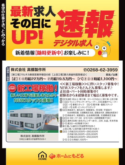 **長野県東信地域で仕事を探すなら「しごと情報ココどう?」。 上田市・佐久市・小諸市・東御市・御代田町・軽井沢町・佐久穂町・立科町・長和町・青木村・南牧村・川上村・南相木村・北相木村・小海町まで、地域密着33年の求人情報をお届けしています。 パート・アルバイト・正社員・派遣・転職など、地元企業の新着求人を毎週多数掲載! 「しごと情報ココどう?」は設置型フリーペーパーとして地域各所に配布し、さらにWebサイトでも最新情報を発信。 地域の企業と求職者をつなぐ、信頼と実績のある求人メディアとして、毎月多くの採用・就職成功をサポートしています。 これから東信エリアでお仕事を探す方、Uターン・Iターン希望の方、学生バイト・主婦(夫)パート、シニア・未経験歓迎のお仕事も豊富です。 求人掲載をお考えの地元企業・店舗様も、お気軽にお問い合わせください。 【今すぐ最新求人情報を見る】【無料掲載のご相談はこちら】 長野県東信地域の仕事探し・求人掲載は、信頼の「しごと情報ココどう?」にお任せください。 【主要エリア】 上田市、佐久市、小諸市、東御市、御代田町、軽井沢町、佐久穂町、立科町、長和町、青木村、南牧村、川上村、南相木村、北相木村、小海町 【対応職種】 パート、アルバイト、正社員、派遣、契約社員、短期・単発、学生バイト、シニア歓迎、未経験OKのお仕事多数 地域密着型求人サイト「しごと情報ココどう?」で、あなたにぴったりのお仕事がきっと見つかります。 ───────────── 地元で働こう、地元で見つかる 「しごと情報ココどう?」 ───────────── ※フリーペーパー設置場所:スーパー・ドラッグストア・公共施設など、東信地域全域に多数設置中!