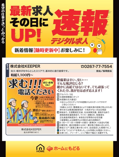 週払い貸付、住まい・・・→相談してください。嫁さん以外は何とかします。最高齢83歳→元気な内は働かないと・・認知症リスク大ですよーhttps://kitsugi.co.jp/keeper/原付または普通自動車免許※免許がな昇給あり、交通費規定支給、社会保険完備資格取得支援制度あり、マイカー通勤OK、正社員登用制度あり、単身及び世帯用の社※諸事情による業務中止の場合も給与保障8:00〜17:00※現場への直行・直帰日曜定休、週2日勤務からOK!曜日等ご東信エリア(長期工事が多いので、ほぼ固定まずは「ココどう?を見ました」とお気軽にお主婦(夫)、フリーター、シニア層まで幅広く最新求人その日にUP!デジタル求人速報新着情報【随時更新中】お楽しみに!求む!!!直行・直帰OK!電話ください今更この年で苦労したりペコペコしたくない→大丈夫です→真面目に決まった業務をこなしてもらえば、堂々としててください。希望の仕事がきっとみつかる希望の仕事がきっとみつかる